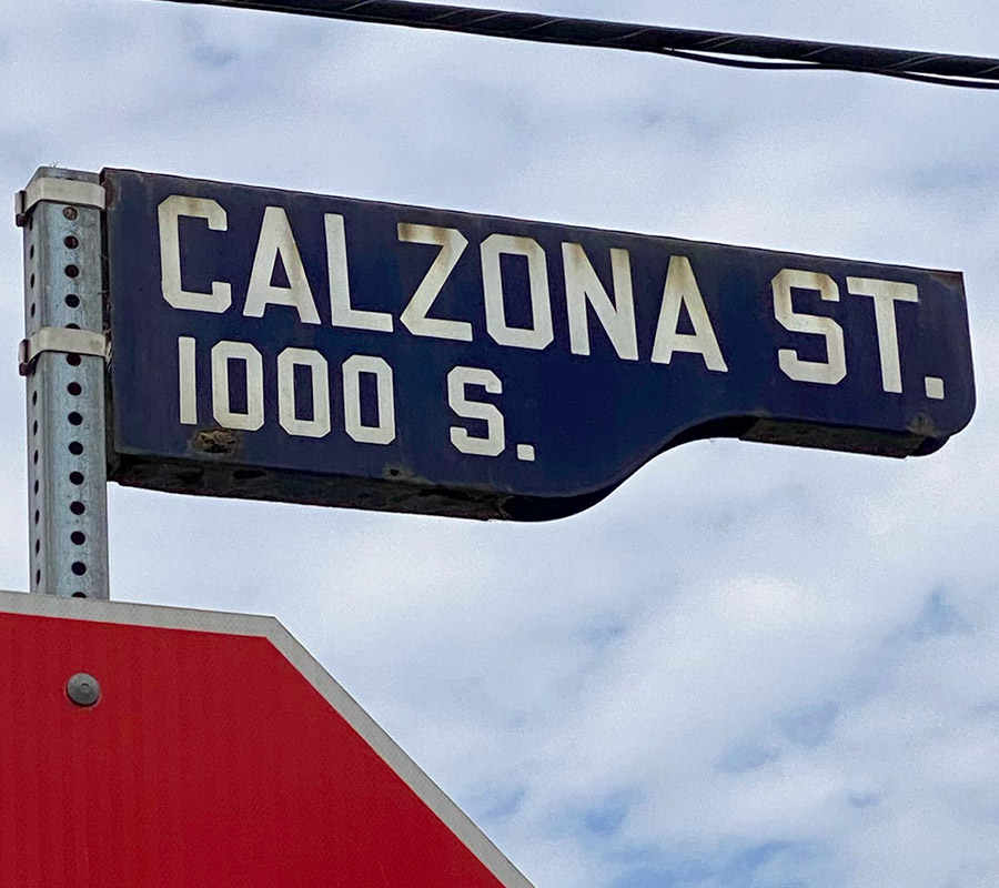 It’s not a misspelling of the Italian snack (calzone) or the Spanish word for “underpants” (calzón). “Calzona” is a portmanteau of California and Arizona. Calada Street, one block west, is similarly a contraction of California and Nevada. The two streets were previously called El Paseo Street and Colina Street, respectively. They were renamed in 1923 while the Union Pacific Railroad was laying down tracks nearby. Calzona and Calada were early 20th century railroad stops and so they may have been the inspirations for these street names – although it should be noted that Edgar Eugene Calvin (1858-1938), VP of the Union Pacific, oversaw the development of both streets, so “Cal” could also be a nod to his surname. Pop music trivia: The zombie dance sequence in Michael Jackson’s “Thriller” video was shot at the intersection of Calzona and Union Pacific.