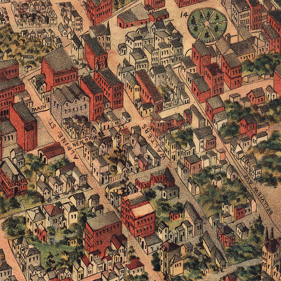 Walking down New High Street, you may ask yourself, “So where’s Old High Street?” That one’s easy: It doesn’t exist. The original High Street was renamed Walters Street in 1886 and then, four years later, Ord Street – the name it holds to this day. As for New High Street, it actually predated the death of High Street. While it doesn’t appear on an 1857 map of the city, it’s mentioned in an 1860 issue of the Los Angeles Star (the city’s first newspaper), so we can guess at its birth year. New High was carved out between Main and Eternity Street (today’s Broadway) to create more real estate in the densifying town. It used to be several blocks longer than it is now, terminating in Temple Square (today’s Grand Park). When Temple Square was torn down in 1926 to make way for L.A.’s iconic Art Deco city hall, New High was pruned back by Spring Street‘s messy realignment.
