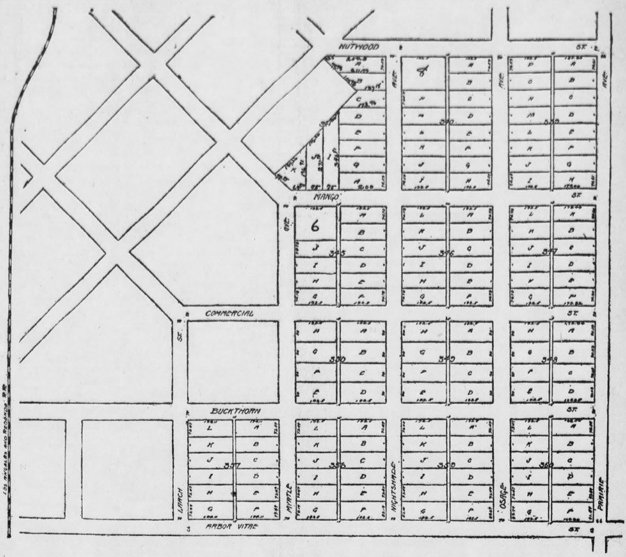 The Osage are a Native American tribe centered in Oklahoma. But while their name has been borrowed by communities across the U.S., Osage Avenue, laid out in 1887 on the Inglewood townsite, was much more likely inspired by the Osage orange, since most of the city’s oldest streets (Arbor Vitae, et al) share a botanical theme. Old maps also show that this was the “O” in an alphabetical series: Larch Street, Myrtle Avenue, Nightshade Avenue (now Flower Street), Osage Avenue, and Prairie Avenue. In the 19th century, Osage orange shrubs and trees – despite its name, it’s not a citrus but a member of the mulberry family – were mostly planted by ranchers as thick, thorny hedges. (Some still know its alien-like fruit as “hedge apples”.) Its durable wood also proved useful in wagon wheels and fenceposts. There was even a period in the late 1800s when certain enterprising Angelenos were trying to make it rich as silkworm farmers and the foliage of the Osage orange provided food for the larvae.