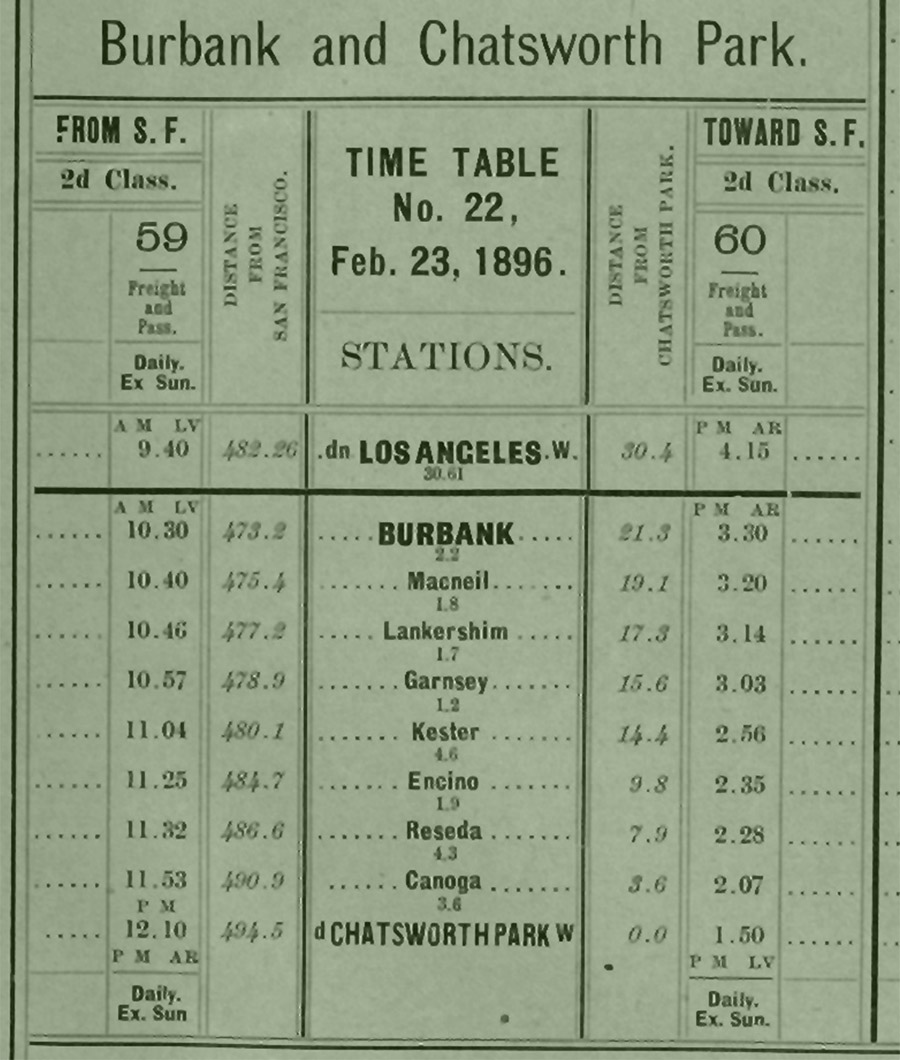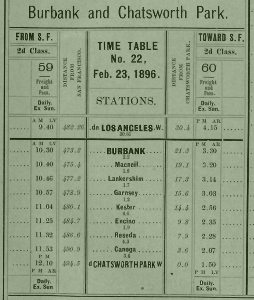 The Reseda neighborhood was born in 1911 as the town of Marian, named after Marian Otis Chandler (1866-1952), whose father Harrison Gray Otis and husband Harry Chandler were subdividing the lower half of the Valley at the time. (She was third in charge at the Los Angeles Times, behind only Otis and Chandler themselves.) Eleven years later, Marian’s residents wanted their own post office, only to learn that “Marian” was already registered elsewhere. (The U.S. Post Office strictly controlled such things back then.) And so they borrowed the name from Reseda Avenue (now Boulevard), laid out in 1910 by Otis, Chandler, et al. So who coined “Reseda” in the first place – and why? You’ll have to ask the ghosts of the Southern Pacific Railroad: they erected a little station here called “Reseda” in 1893 or 1894. While the nomenclature of the SPRR’s old stations is maddeningly opaque (see also: Raymer Street), reseda was a popular fabric color for Gilded Age ladies – sort of a light olive green. (Reseda odorata is the Latin name for mignonette, a fragrant flower whose verdant stems may have inspired the color.) One could argue that the Southern Pacific chose such a lush, fashionable name to convince Angelenos that the SFV was not a barren wasteland.