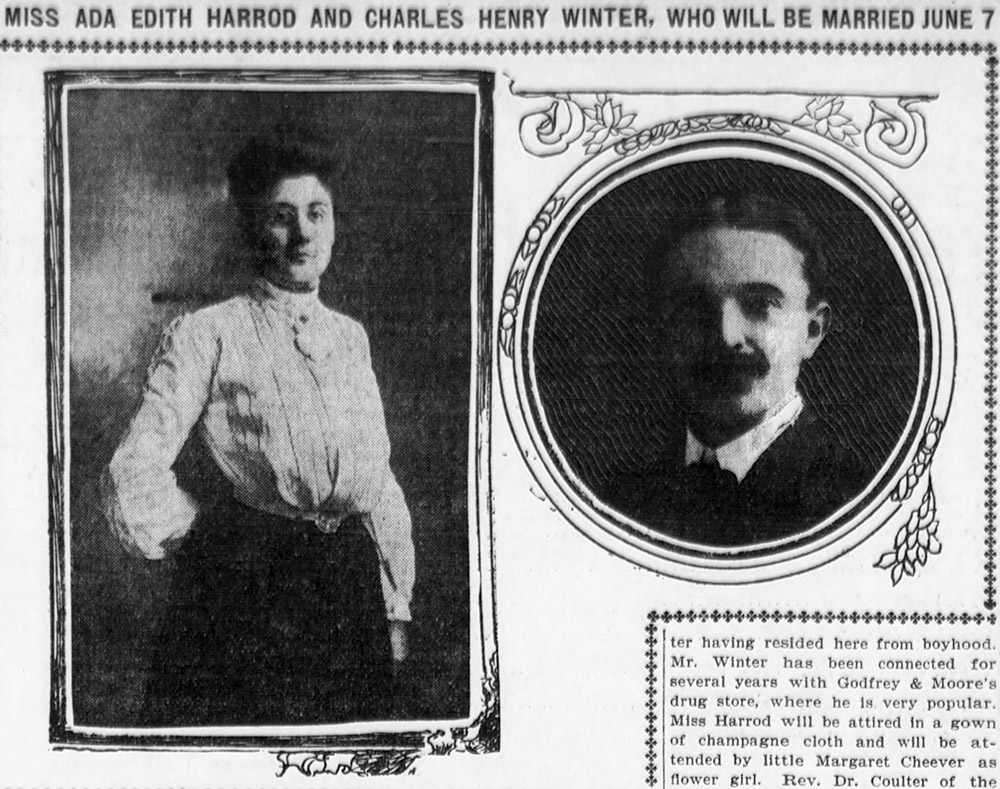 On the 1904 map of the Carnation Terrace tract, owned and sold by Paul Blades and Daniel Stone, six additional owners were listed, including E.L. Blanchard and C.H. Winter. It’s safe to assume that Blanchard and Winter streets honor them; only slightly less safe to assume that this “C.H. Winter” was pharmacist Charles Henry Winter (1873-1924). While I found no further ties between him and the tract’s other owners, I’m 95% sure I’ve got the right guy as he was the only C.H. Winter listed in city directories at that time. Winter was born in Louisville, KY to Prussian parents. When he was three years old, his mother divorced his father on charges of drunkenness. (The father was found dead in the Ohio River two years later.) Along with his mother and his three older sisters, Winter relocated to Los Angeles c. 1888. He was working as a pharmacist by 1893 and married Ada Edith Harrod (1879-1945), an Ohio native, in 1905. Alas, an undisclosed malady reportedly drove Winter mad: on the night of June 8th, 1924, he struck Ada, chased her out of the house with a loaded pistol, then shot himself four times in the abdomen, ending his troubled life.